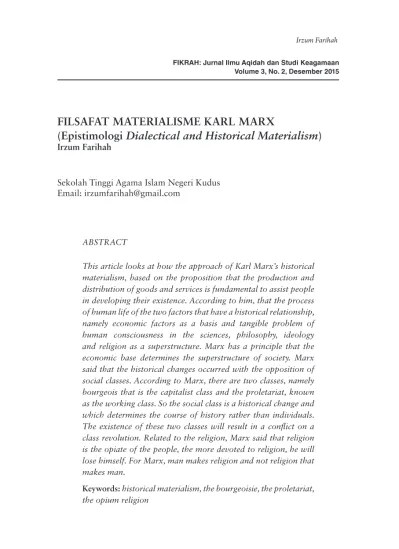 Insan kamil adalah teladan sera contoh ideal bagi setiap muslim. Aliran materialisme adalah suatu aliran filsafat yang berisikan ajaran kebendaan dimana benda merupakan sumber segalanya. Aliran filsafat materialisme memandang bahwa realitas seluruhnya adalah. Karena meja atau kursi secara objektif ada, maka orang berpikir . Hal yang mendasar yang diberikan oleh materialisme kepada budaya dan peradaban.
